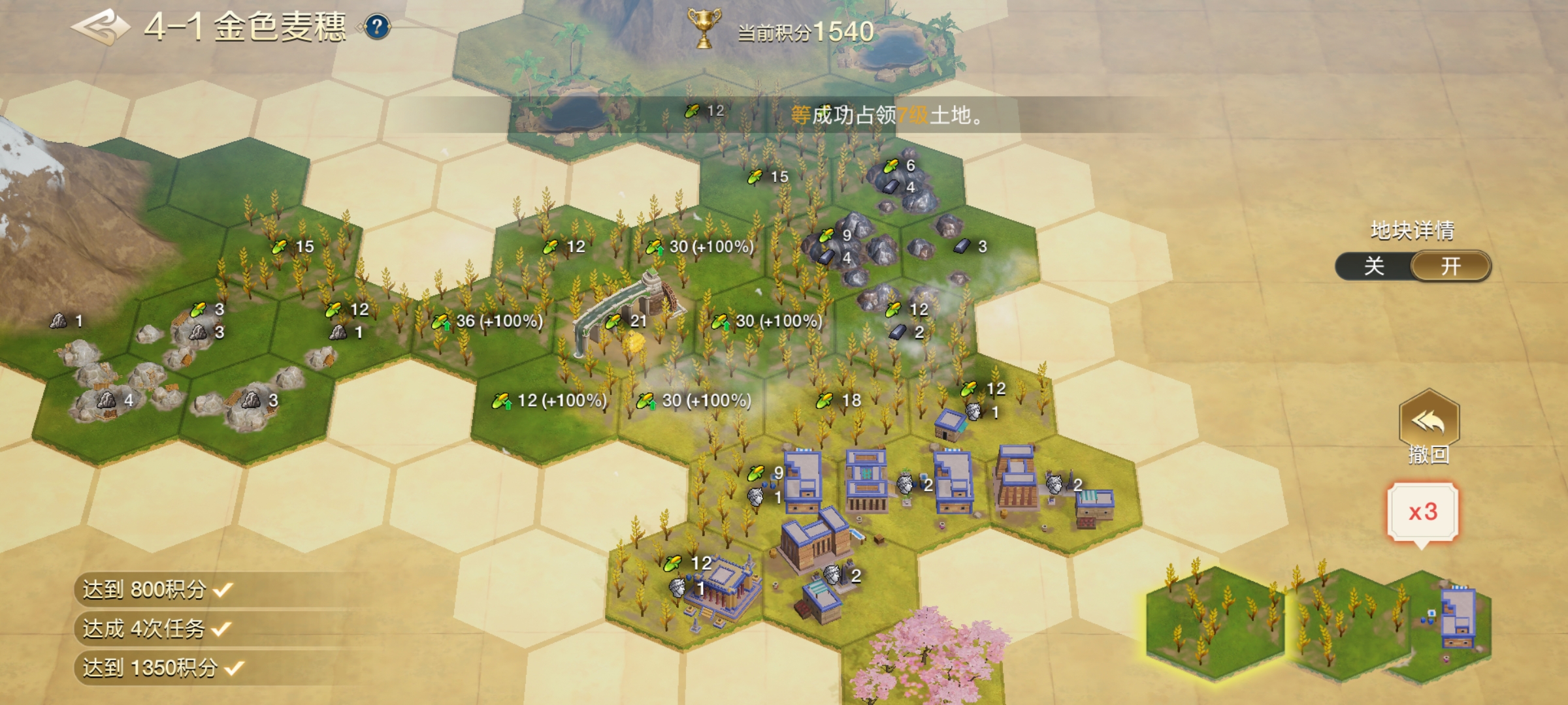本篇给大家带来了《世界启元》文明创想第四章攻略!文明创想每一个地块上有不同数量的单种或多种元素,地块任务要求通常为同元素的地块边缘相连,并达到一定元素数量。完成地块任务的同时,放置完所有地块即可通关(可旋转地块,但地块顺序不可逆)。随着文明创想的关卡推进,地块的旋转与相连方式变得更加自由多变,同样是三星通关,搭配方式与通关积分的上下限极大。
