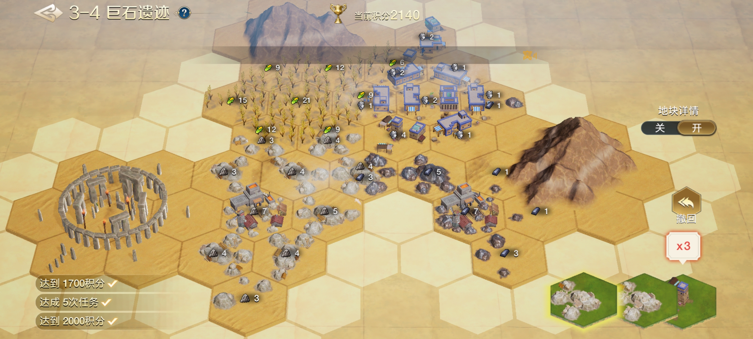本篇给大家带来了《世界启元》文明创想第三章攻略!文明创想每一个地块上有不同数量的单种或多种元素,地块任务要求通常为同元素的地块边缘相连,并达到一定元素数量。完成地块任务的同时,放置完所有地块即可通关(可旋转地块,但地块顺序不可逆)。随着文明创想的关卡推进,地块的旋转与相连方式变得更加自由多变,同样是三星通关,搭配方式与通关积分的上下限极大。
