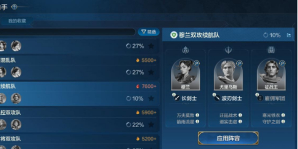 该阵容是一套双攻续航队,虽然依然走的是坦克、治疗、输出的体系,但尤里乌斯是目前顶级的治疗英雄之一,征服王是坦度数一数二的五星前锋,再配合穆兰的一线输出能力,综合实力的高质量使其强度非常高。