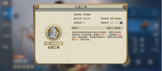 而之所以如此,是因为其自带技能为“长墙工事”输出过于稳定,其效果为: