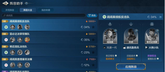 搭配方面,因为没有命运羁绊,阔阔真搭配比较自由。这里建立走法系控制队或者续航输出两种方向。