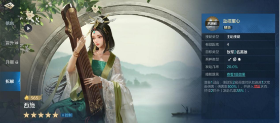 西施是一个控制非常强力的英雄,如果想玩控制队,那么西施是一个不错的控制位,若自己控制流英雄已经很多了,甚至有了体系,那么可以将其拆解,并获得强力控制技能“动摇军心”。