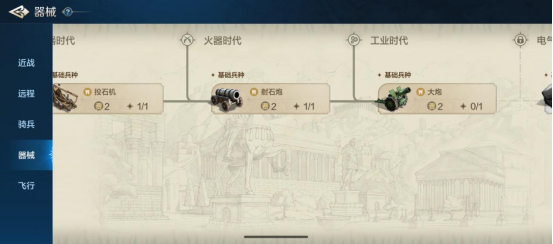 器械兵种解锁最简单,无需科技也无需资源,只要玩家发展到对应时代,就会自动解锁该时代的器械兵种。