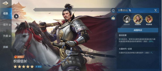对于还不熟悉织田信长的小伙伴,就来看看他的技能与搭配介绍吧。