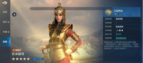 技能搭配上,托米丽司推荐一切以提升输出为主,增伤与追击输出技能均可,如“加冕”“天下当倾”“以战养战”等等都是不错的选择。