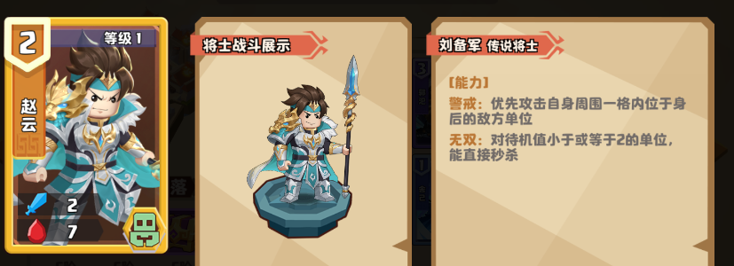 赵云虽然能秒杀各种低费单位,但是对各种2费以上的将士就没有优势,只能算普通的【警戒】单位了,在这里就不浪费时间了。星酱这里主要展开说说在2费以下棋子中,赵云有唯2打不过的将士。