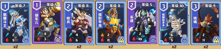 铁蝎+枪兵+骷髅斗士+骷髅投矛手+骷髅战士长+曹操+许褚+司马懿+刘备绝对可以打爆一切困难本。剩下的卡根据副本和个人的卡牌情况调整一下就好了。