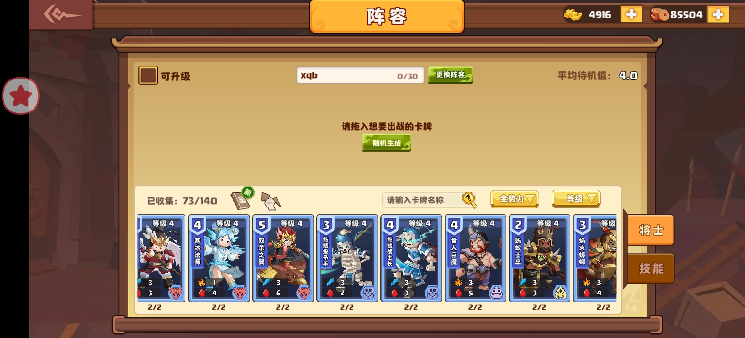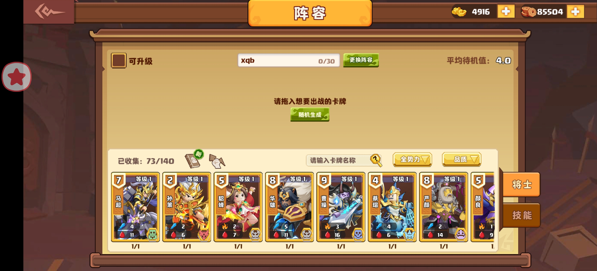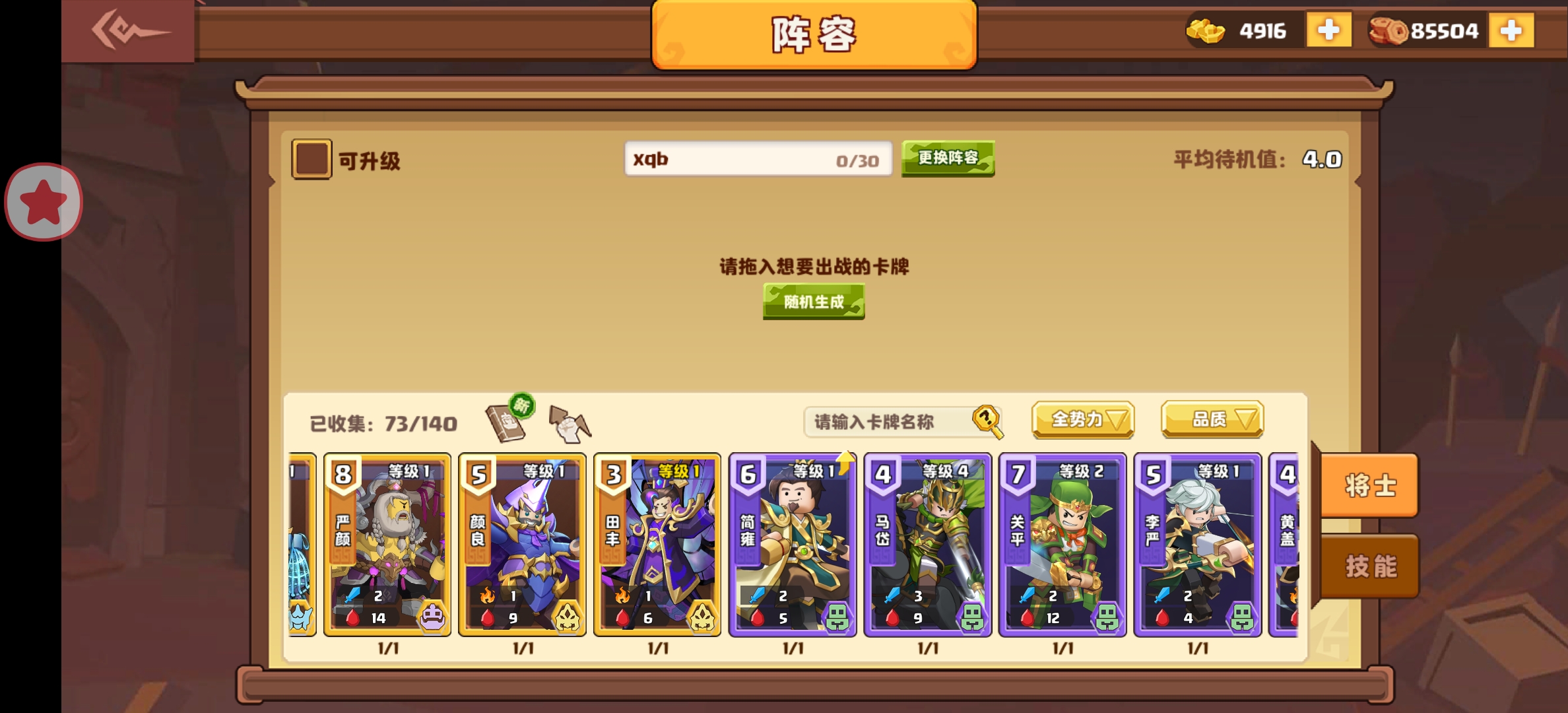 不用的卡最好不要升级,后面有大量需要铜币的地方,用啥升级啥我觉得最好,至于用什么,可以看看排行榜上的大佬们,当然了,你没有的那些橙卡可以替换成蓝和紫,当然了,什么卡只要价格高了,都牛嘎!