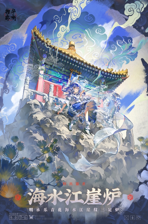 器者外现为疏离冷淡的少女。永乐时期的三足瓷炉,炉身绘有磅礴大气的海水江崖纹,在故宫器者们相聚时,她总在旁静静倾听,一旦开口说话,场面总会安静。