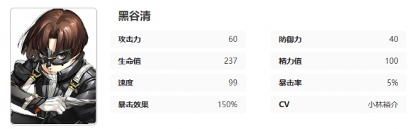 《女神异闻录:夜幕魅影》黑谷清怎么样?黑谷清是女神异闻录中的四星角色,人格面具为绪刻,那么黑谷清在夜幕魅影中有着什么样的技能,意识又有哪些加成呢?接下来就让我们一起了解一下吧。