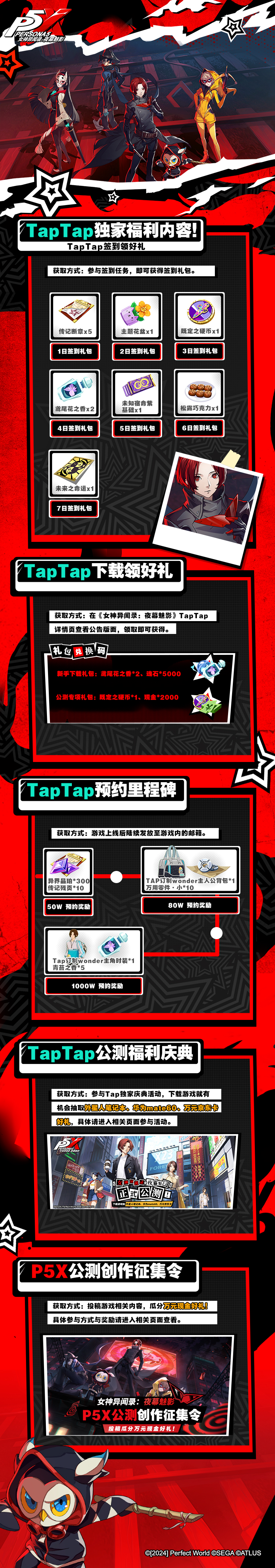以上就是小编整理带来的p5x公测礼包码大全,公测礼包码合集介绍,更多精彩内容,请点击关注手游网,小编将持续为您更新!