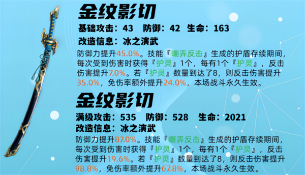 1、金纹影切是喜多川祐介的专武能够提高角色的生存能力。