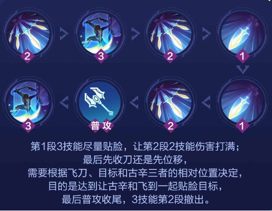 古辛向指定方向投出短剑标记命中的第一个目标。再次使用位移到目标身后。