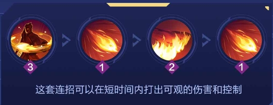 法烈尔向指定方向释放火球,触碰到目标后爆炸造成范围伤害和减速效果并在地面残留火焰。短时间后火焰再次爆炸。