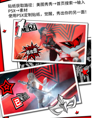 2、一秒get怪盗团同款照片!还可以参与APP内【#P5X怪盗变装#】话题挑战赛,成为万众瞩目的怪盗!