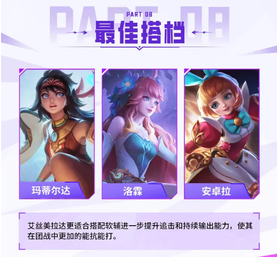 艾丝美拉达比较依赖装备和经济,中期还是以发育为主,多观察小地图根据位置看情况支援队友。