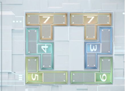 3、将5号图案放置到左下角,刚好与4号图案重合。