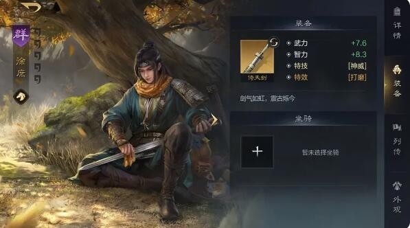 而上品和珍品装备还可以拥有特技和特效,给予装备的武将特殊的被动和效果,有时候还能够起到扭转战局作用。有时候相同的武将差不多的兵力,胜负的差距就会体现在这一点上,高属性和相性好的特效装备直接给主C队伍就行了。比如将增加武力与智力属性的装备,给到造成兵刃与谋略伤害的武将徐庶携带。