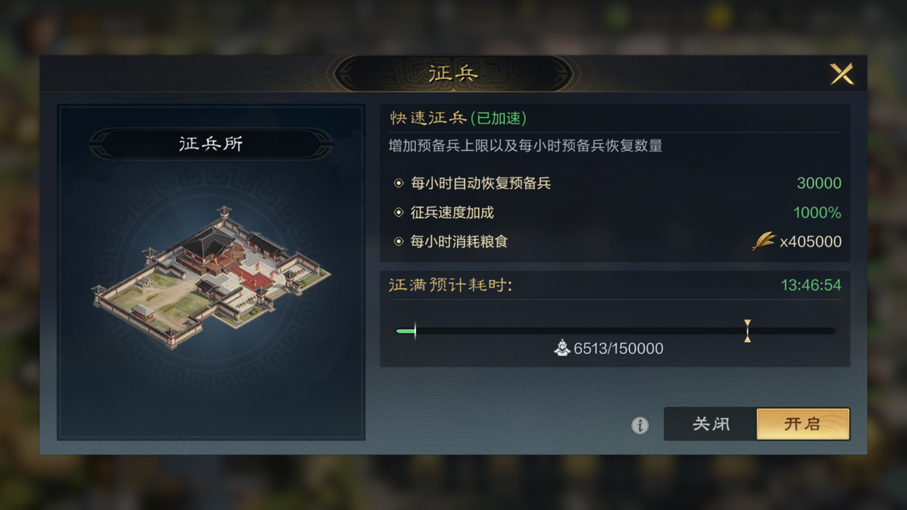 如此一来,集市买的预备兵,加上城外城内的粮食产量,如果你是青囊或者镇军玩家,还可以保证兵力的恢复,粮食资源加上技能,这样便可以长时间保证有足够的预备兵了。这样也不用担心遇到在用快速征兵的时候,发现辎重足够但是预备兵不够的窘境。
