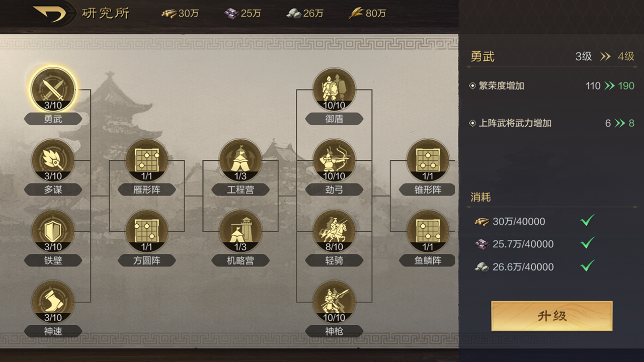 升级战法能使发动几率或者是倍率上升!对队伍的强弱至关重要!