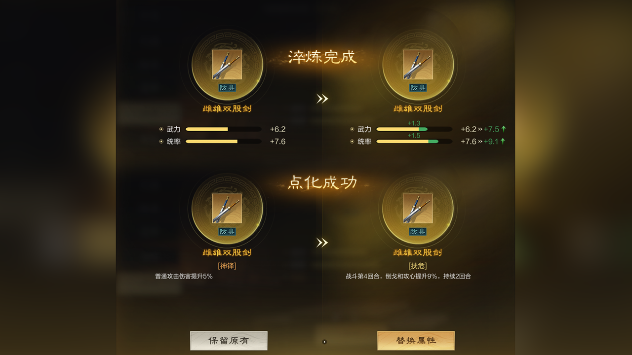 2. 装备淬炼能随机修改加成属性,点化能随机调整特技特效。