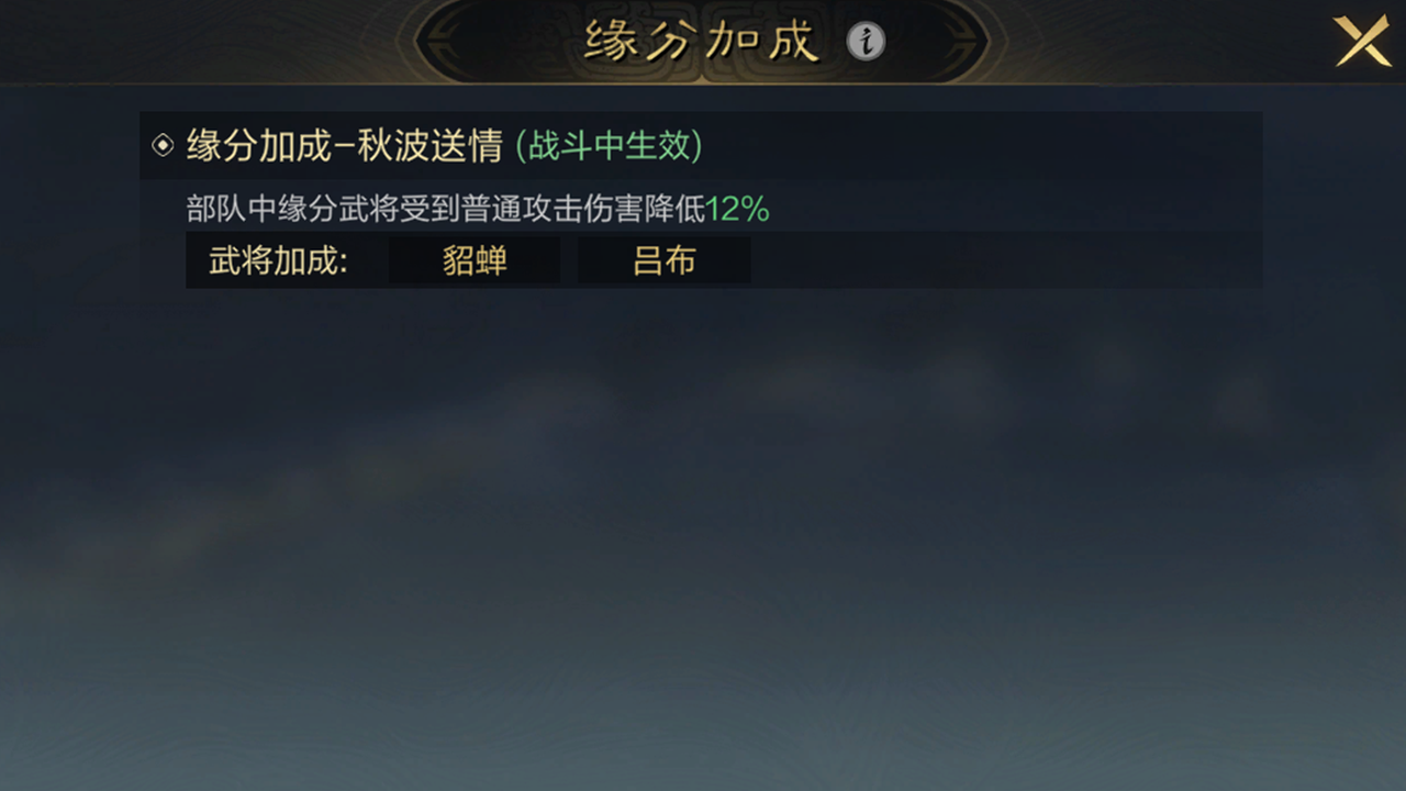 1. 武将之间额外有阵营、兵种、缘分三种加成。