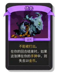 不能被打出。在你的回合结束时,如果这张牌在你的手牌中,则失去10金币。