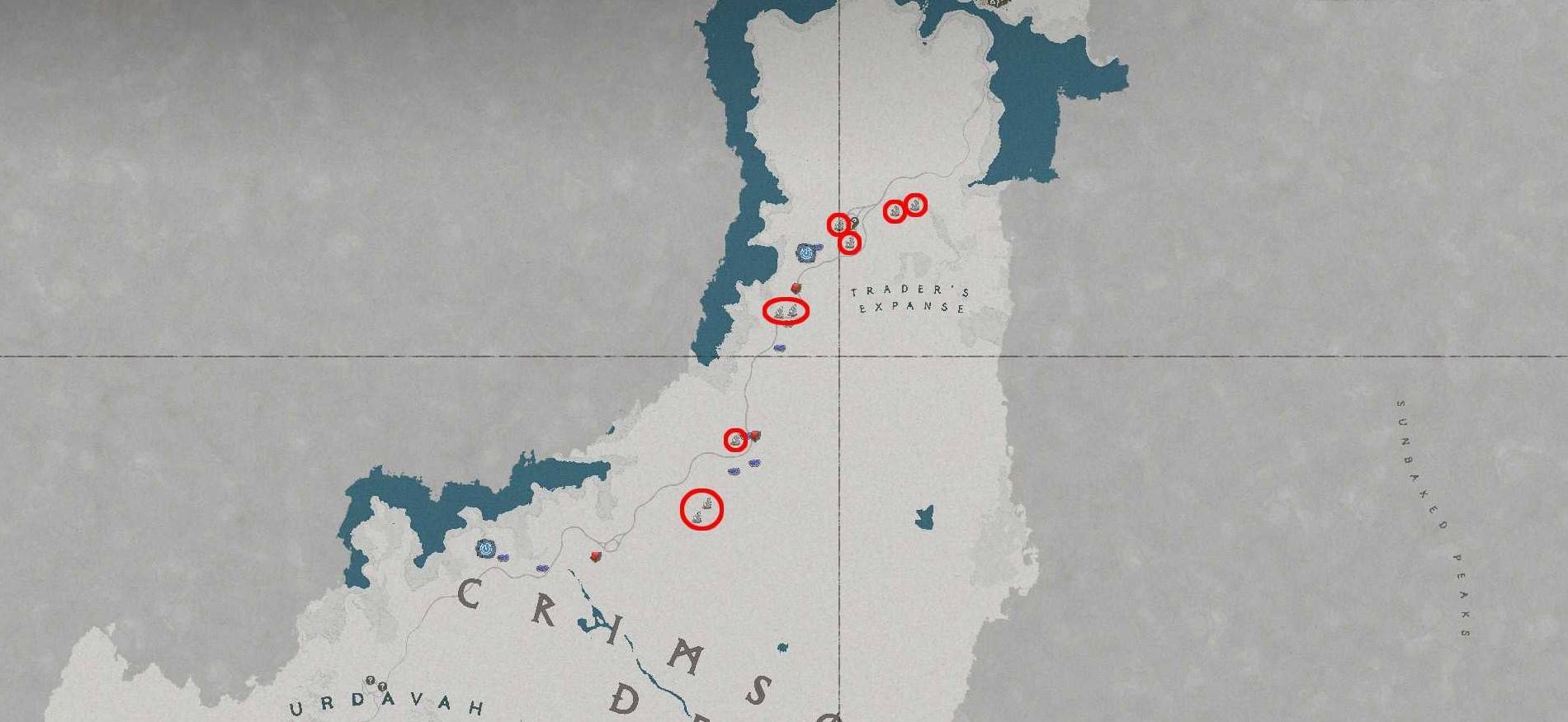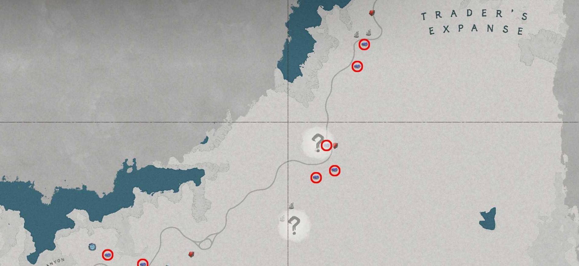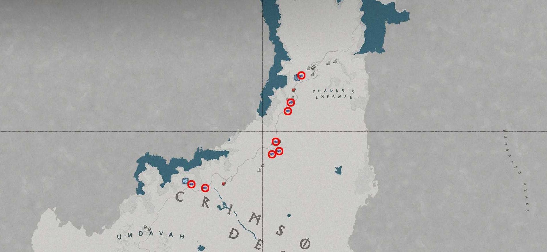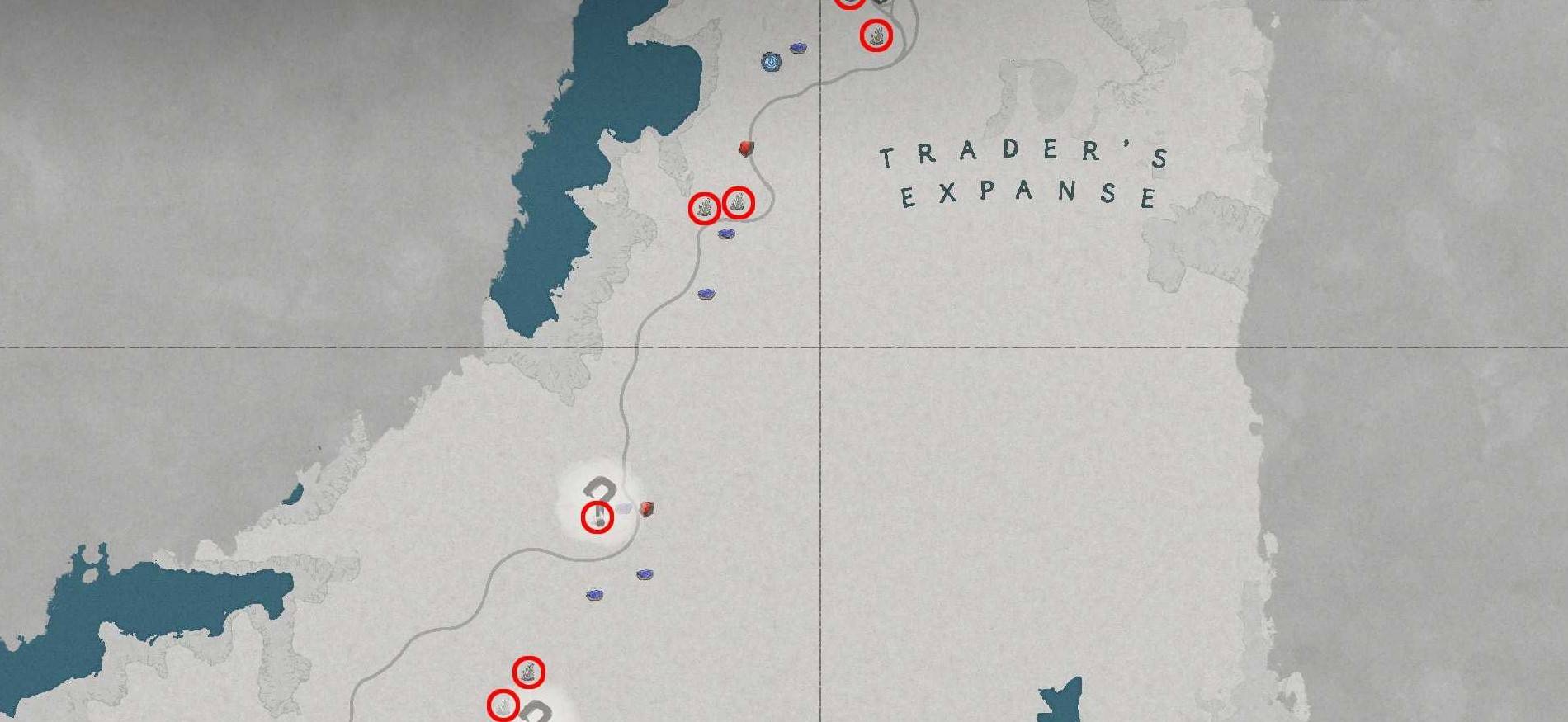 位于红色沙漠通往瓦尼亚的主干道两侧,具体位置可参考游戏内地图或截图标记。矿点通常呈簇状分布,沿着道路走就能发现多处。