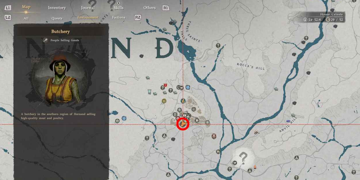 红色沙漠烤肉获取方法首先介绍方法一:购买生肉后烹饪。肉贩位于埃尔南德镇西南边缘,是一个绿色哥布林女性 NPC。在地图界面切换到环境选项卡,可以看到肉贩位置标记为问号图标。肉贩出售的肉类包括 10 份瘦肉、9 份优质肉、6 份嫩肉、7 份大理石纹肉,以及 12 份劲道的肉、10 份禽肉、15 份瘦禽肉。