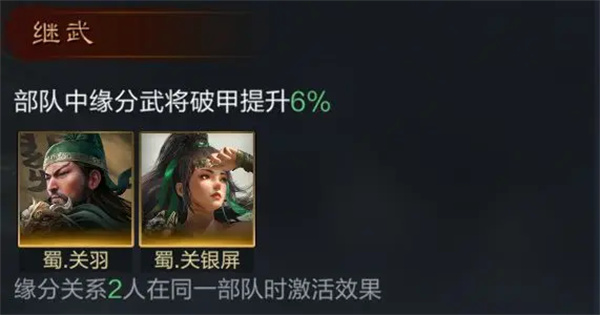 提升缘分武将的破甲和伤害。