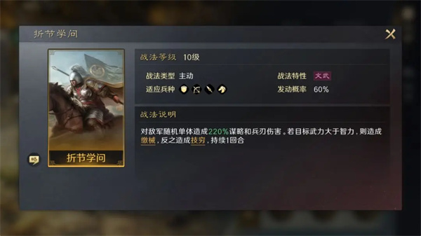 【折节学问】主动战法,对敌人施加高额伤害和控制。