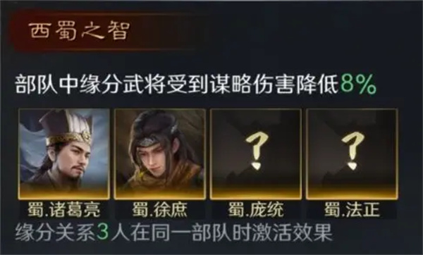 降低缘分武将受到的谋略伤害。