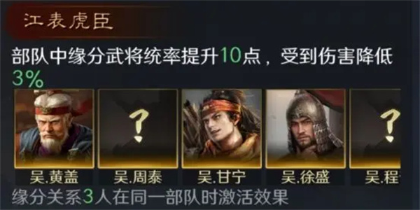 提高缘分武将的统率值并降低受到的伤害。