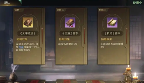 2.于吉战法:风急雨晦+料事如神+避其锐气。韬略库:太平经(专属)+束伍善本+强战善本。弩兵特性劲弩,专精点亮密雨箭岚。