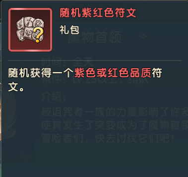冒险者达到25级后将开启此玩法,此玩法需要冒险者挑战讨伐法兰大陆上那些被诅咒的魔物首领,可千万不要小看这些魔物首领,冒险者需要有一定的策略才能战胜这些首领,击败可以获得符文洗炼石、宠物洗炼药水、翅膀淬炼灵石、符文熔炼石、符文刻印石、随机紫红色符文、随机紫红饰品、装备进阶石、符文进阶石等珍稀道具。