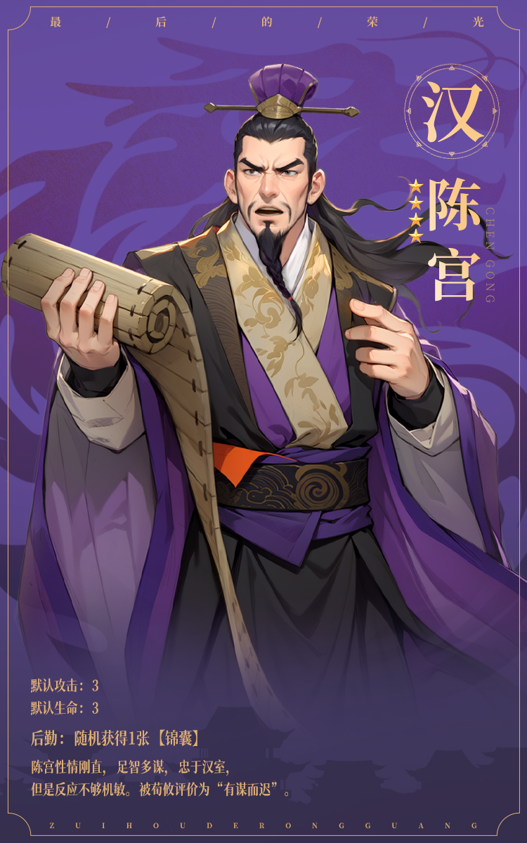 以上就是小编整理带来的《最后的荣光》名将图鉴——陈宫,更多精彩内容,请点击关注易采游戏网、!