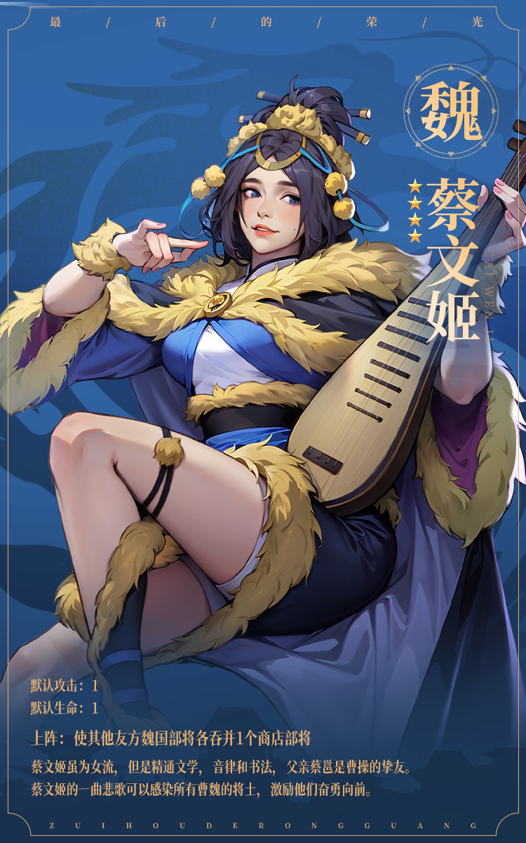 以上就是小编整理带来的《最后的荣光》名将图鉴——蔡文姬,更多精彩内容,请点击关注易采游戏网、!