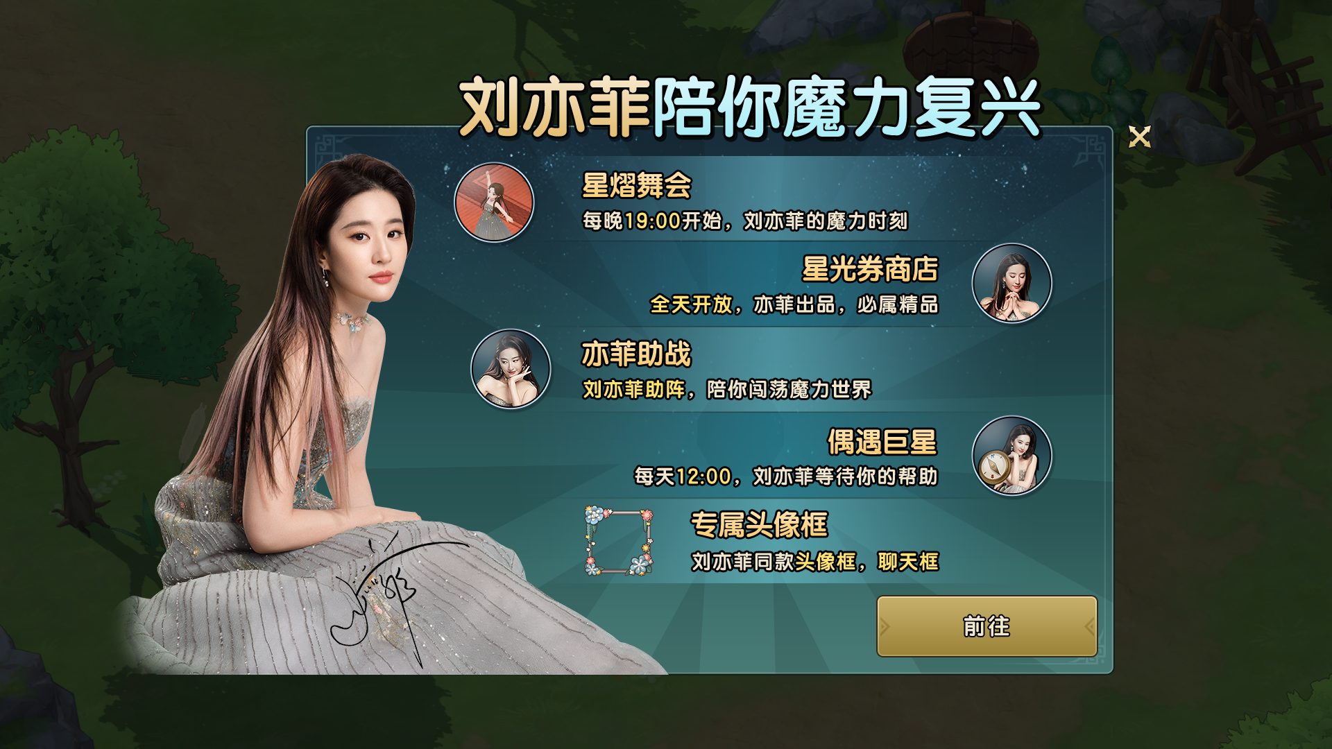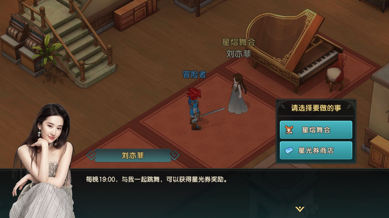 每晚19:00,可与刘亦菲共舞,获得星光券奖励,还有额外的经验获得哦。