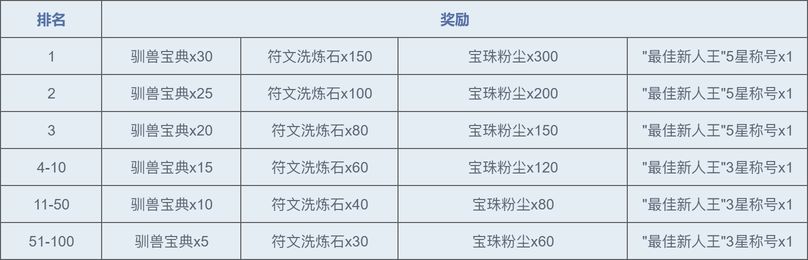2、活动时间内按照玩家等级进行排名,活动结束后等级排名前100名可获得驯兽宝典、符文洗炼石、宝珠粉尘、称号等奖励。