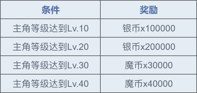 1、活动开启后,角色等级达到时可领取相应奖励