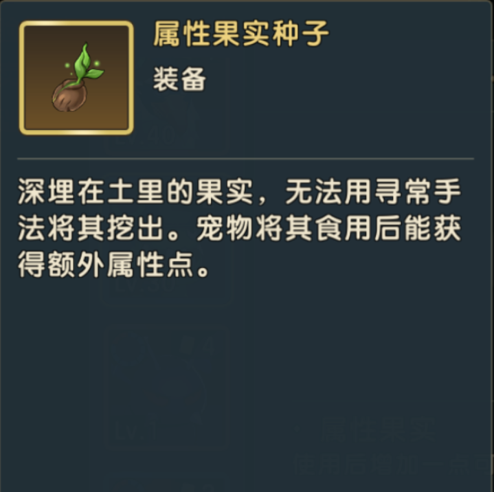 深埋在土里的果实,无法用寻常手法将其挖出。宠物将其食用后能获得额外属性点。