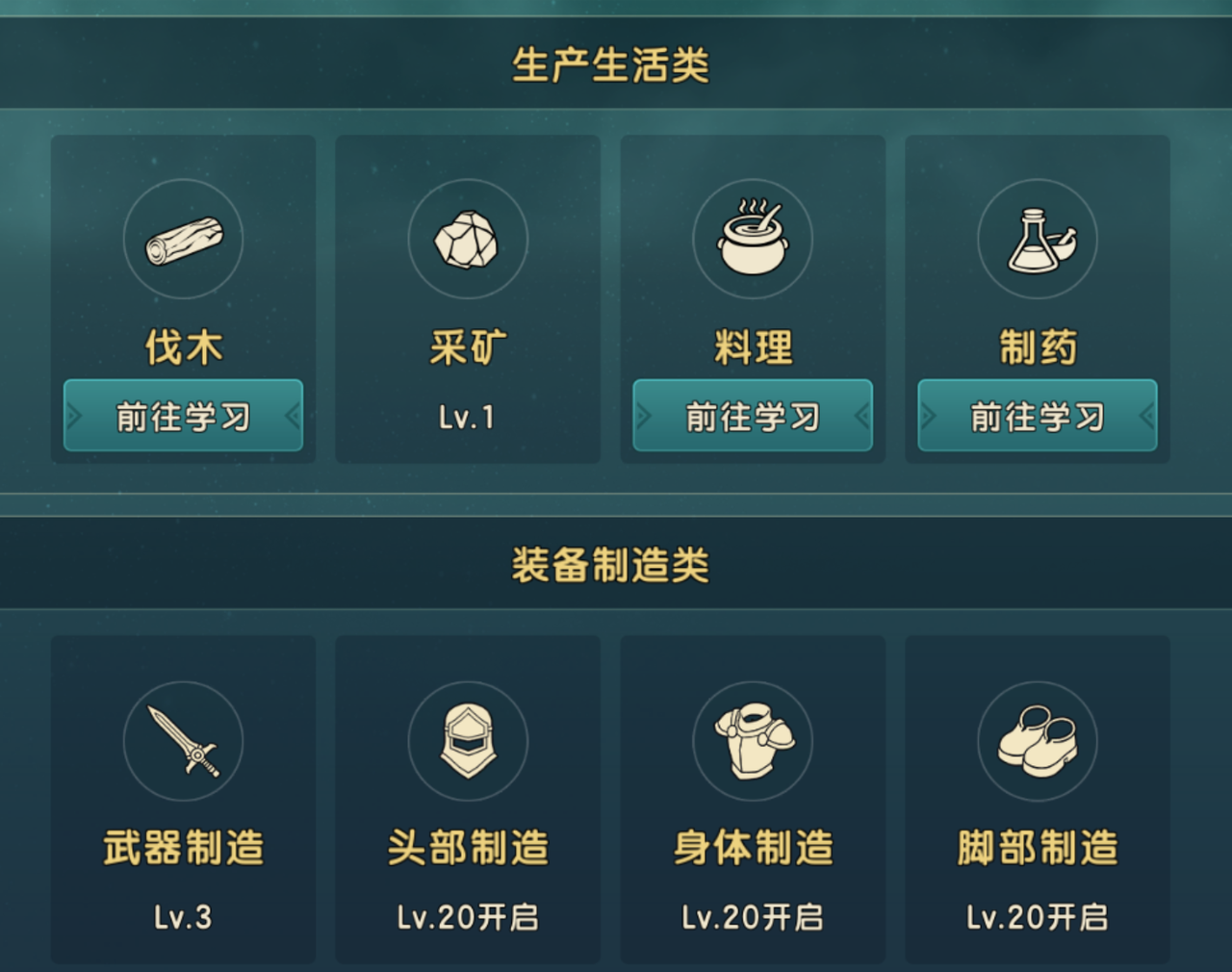⑥生活制造当角色到达20级时,生活制造系统中所有功能将会全部开放,而我们就能为自己打造装备了。