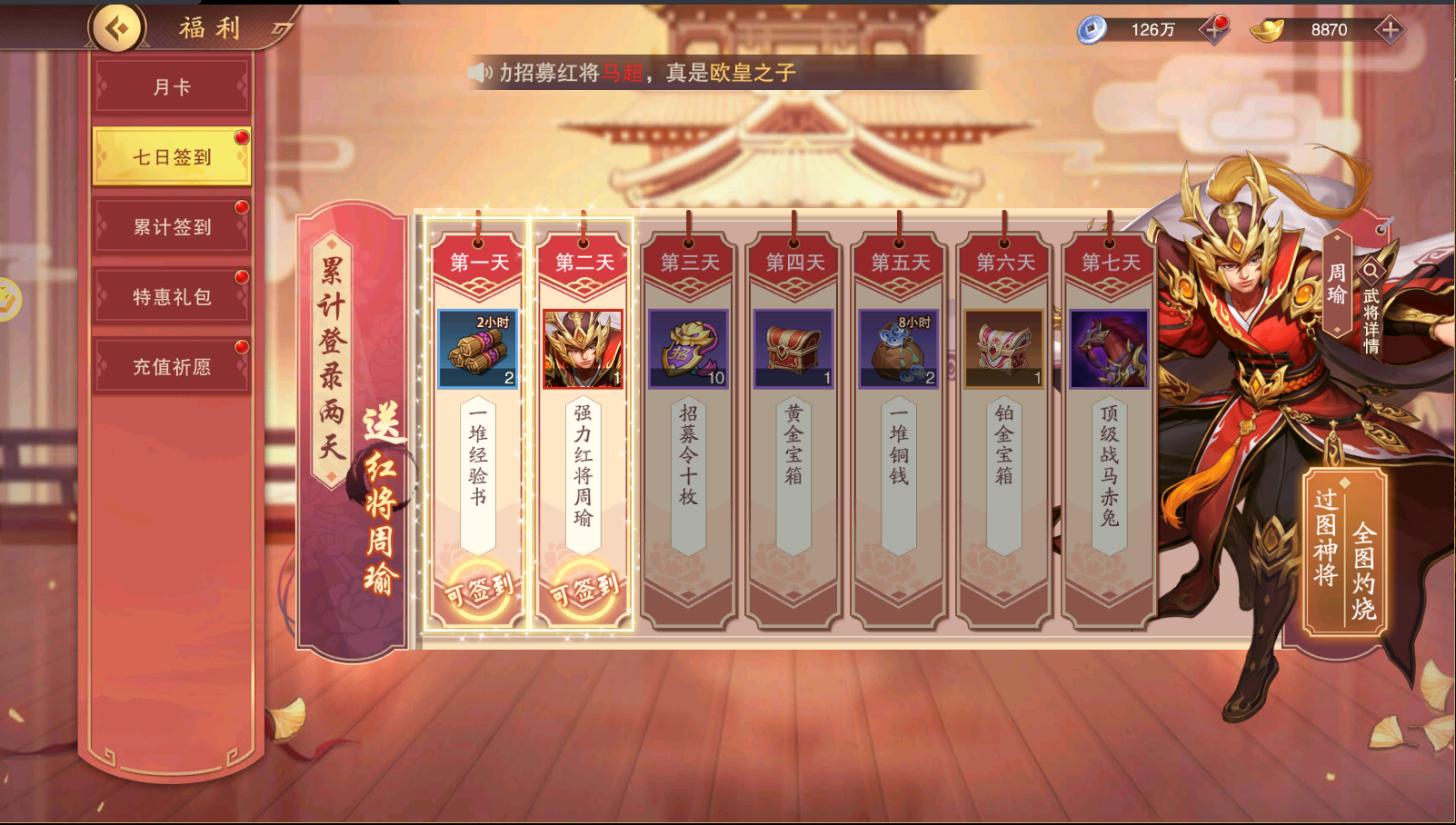 核心奖励:赤兔战马(白嫖关羽的第一个宝物),最强法师--周瑜