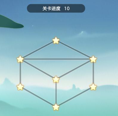 1、一笔画玩法,不能重复,全部连接星星