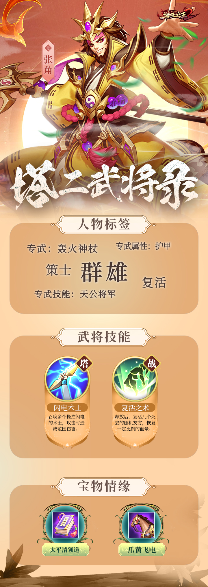 以上就是小编整理带来的《塔王之王2》张角角色图鉴,更多精彩内容,请点击关注手游网!