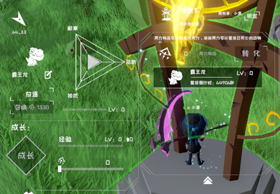 理想乡是能够帮助宠物提升属性突破自身的一种魔法设备,它甚至还能够使宠物脱胎换骨变成附加其他的元素属性。
