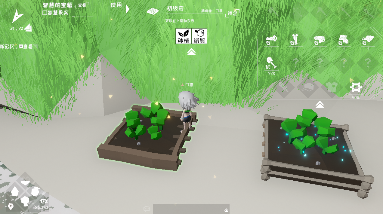 这时候就可以开始准备田地了,田地分为三种:低级田-中级田-高级田。越高级的田地的种植面积就越大,能种植的植物类型也就越多。