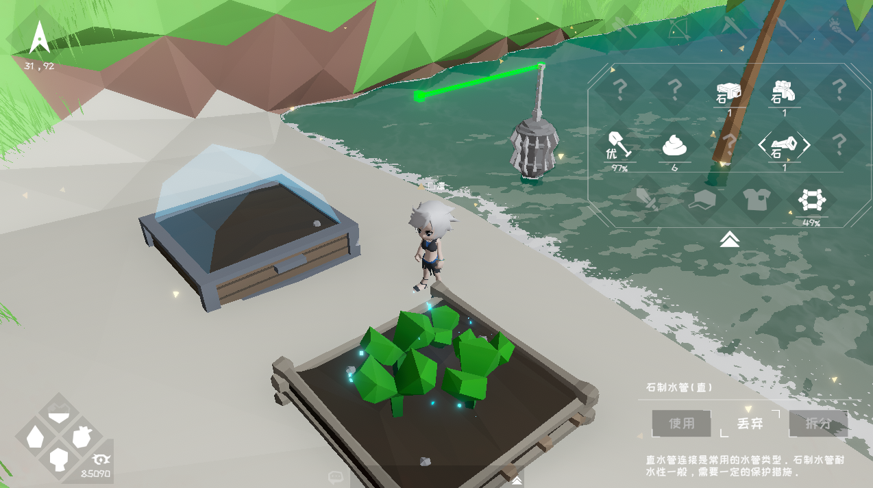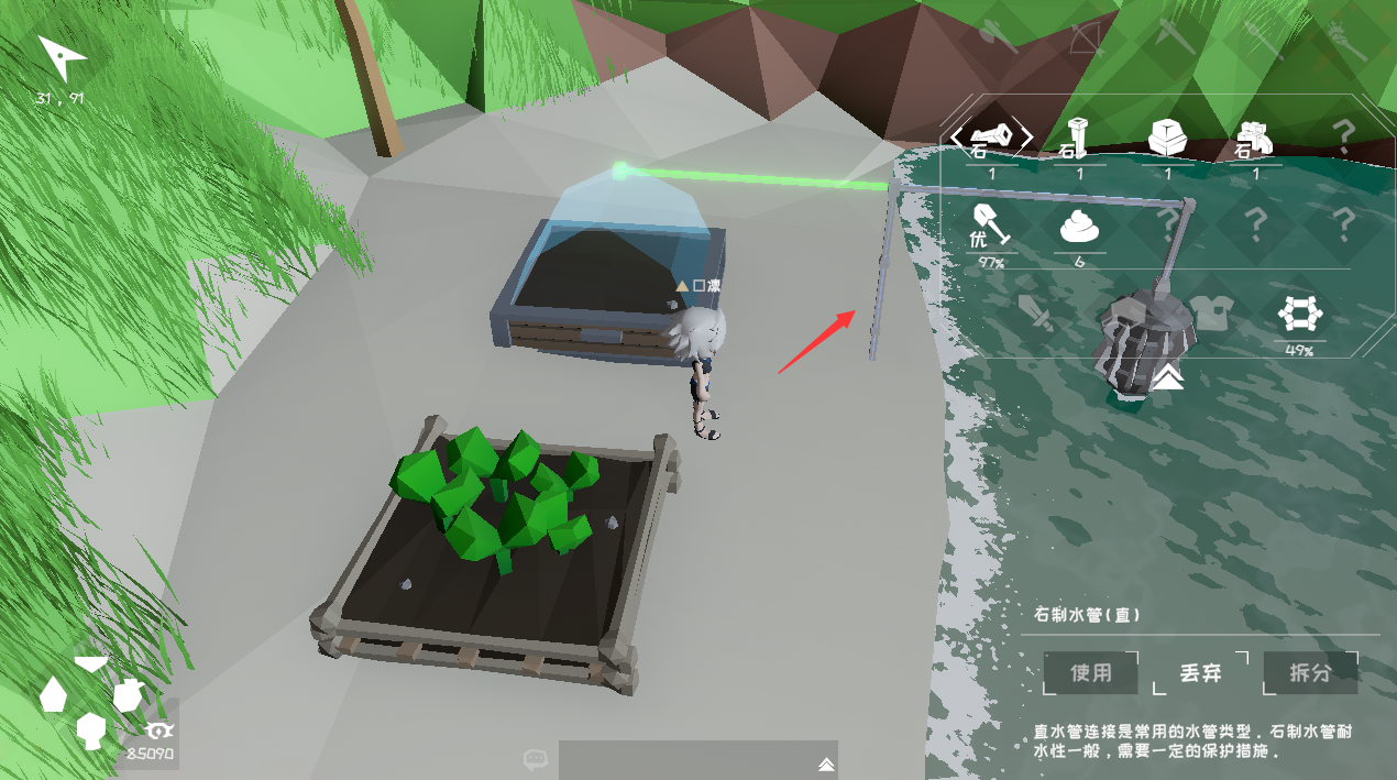 所以如果使用大型田,我们还需要准备好水管来用于引水灌溉,所以喜欢种田的冒险家在选址的时候一定要选离水源近的地方!