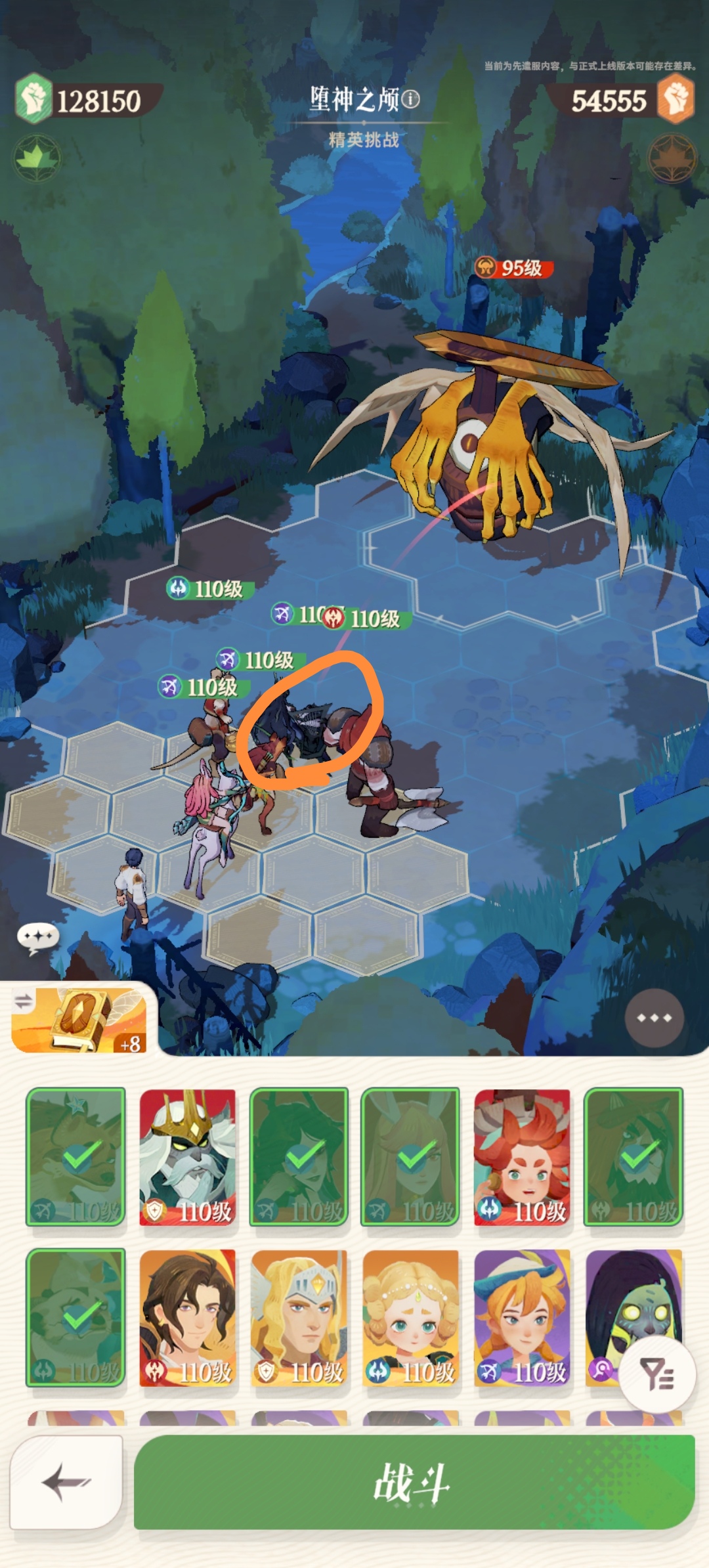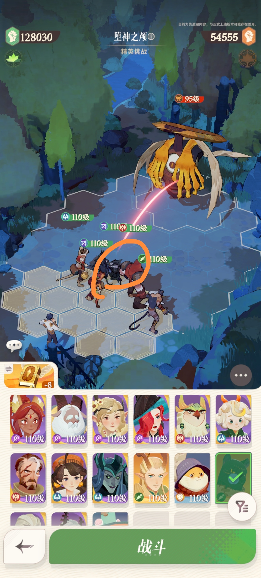 这样站位的好处在于,第一波boss召唤出来的小怪,我方都没机会放大,斧熊就会走到左边刚好可以吃到奶爸的buff圈,荆棘召唤物放右边就可以,再后续小怪出来的时候,最快速度清理小怪。