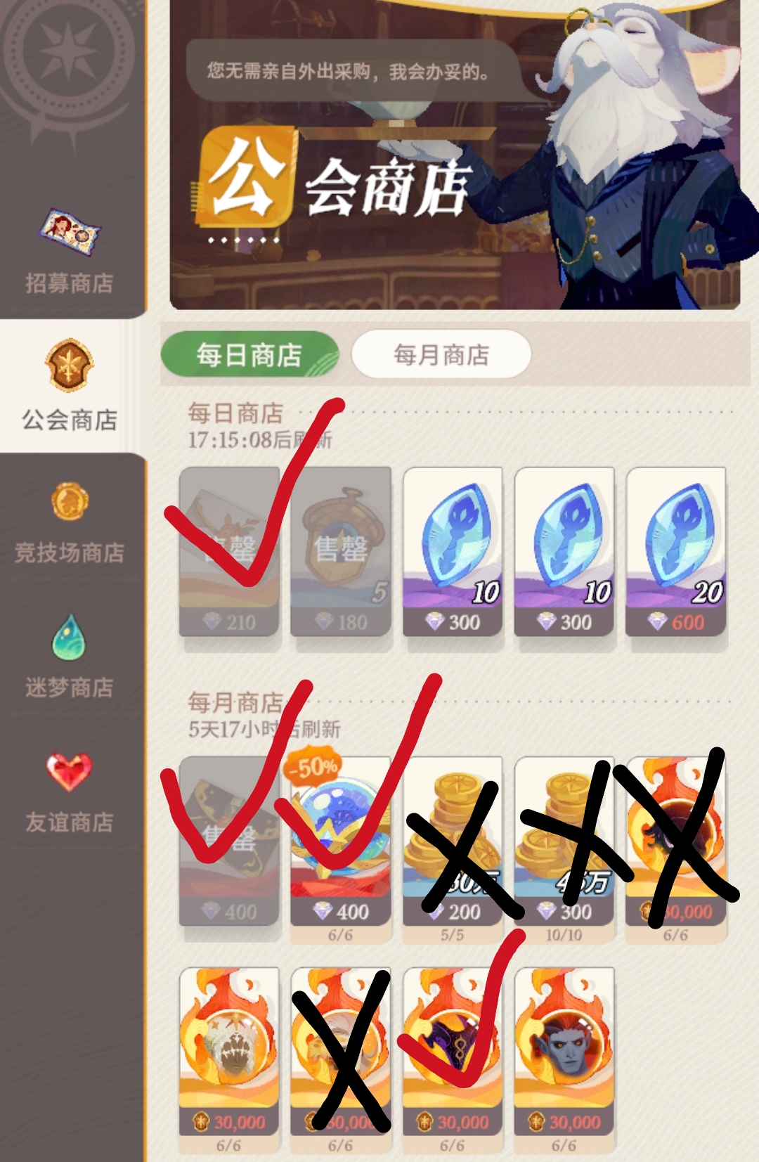 1、公会每日商店: